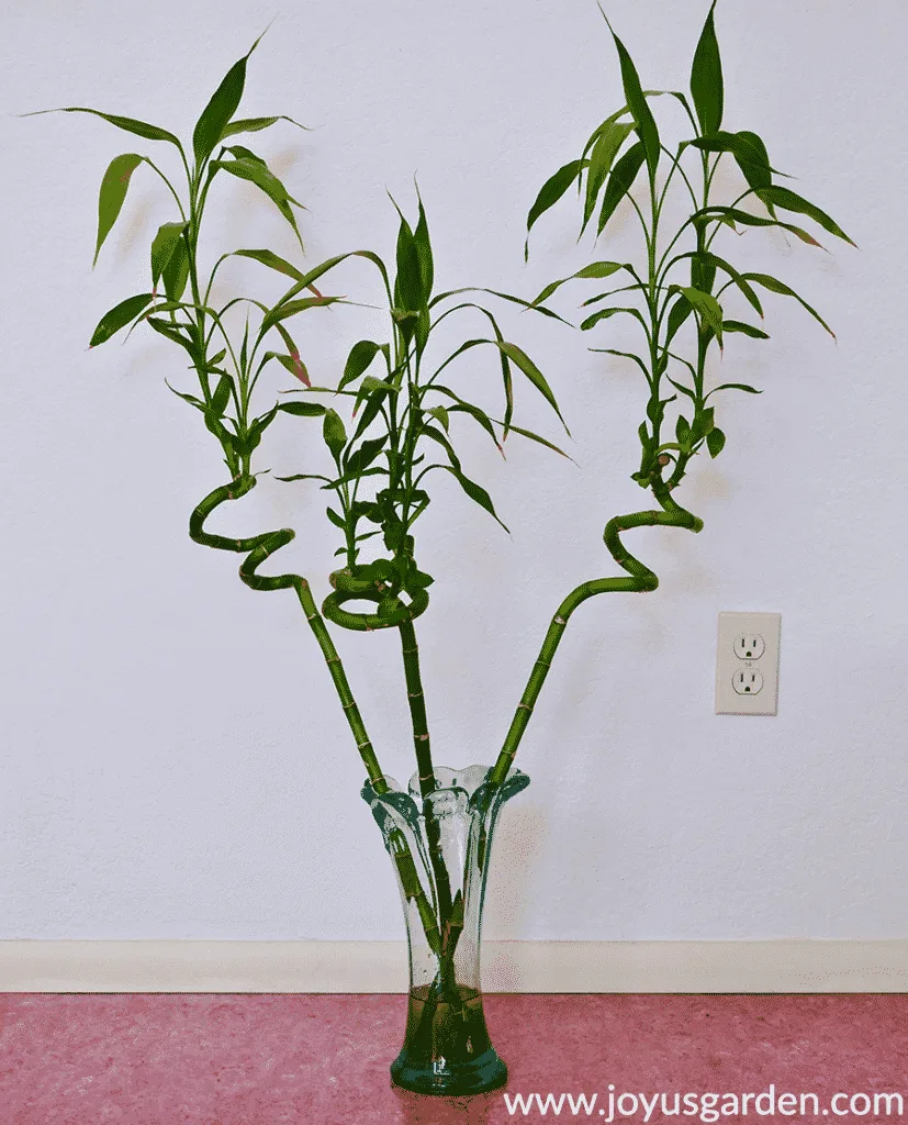 Lucky Bamboo care is easy to care for. That’s one of the reasons these plants are so popular! They are novelty plants sold in many sizes and forms which also adds to their appeal.