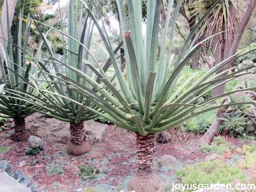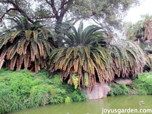 I’m going to share a couple of stories which our docent told when I visited Lotusland last May on a foggy morning. We’ll start with the magnificent Cycad Garden. Cycads are prehistoric plants and winding through the paths gives you a feeling you’re touring through Jurassic Park.