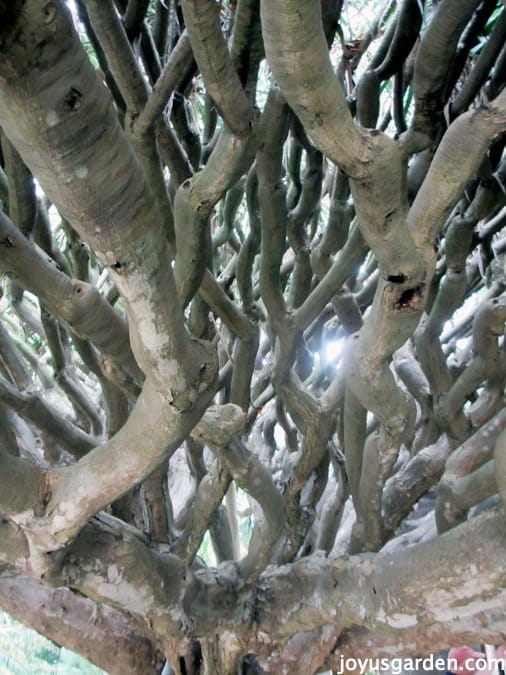 These Dragon Trees right off the driveway circle are so large and so thick that when walking through them you think you’ve entered into a forest. The plant (both the leaves and the trunk) secretes a red resin-like goo that has been likened to dragon’s blood – hence the name.