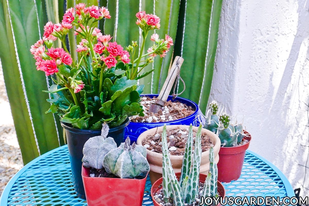 Most plants, both indoor & landscape, come in plastic pots. This is what I use unless I’m directly planting into a decorative container like I did with my Ponytail Palm, Aeonium, succulents & cacti garden. Terra cotta is great for directly planting too.